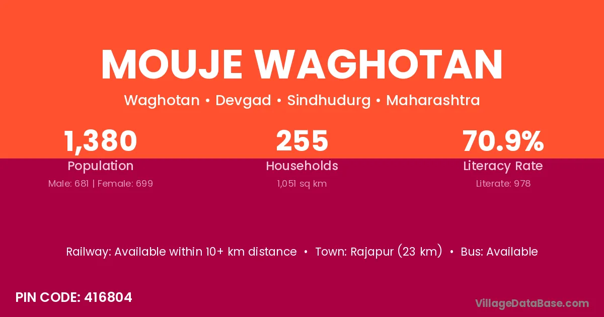 Rajapur (23 km) is the nearest town to Mouje Waghotan village for major economic activities and is located approximately 23 km away.