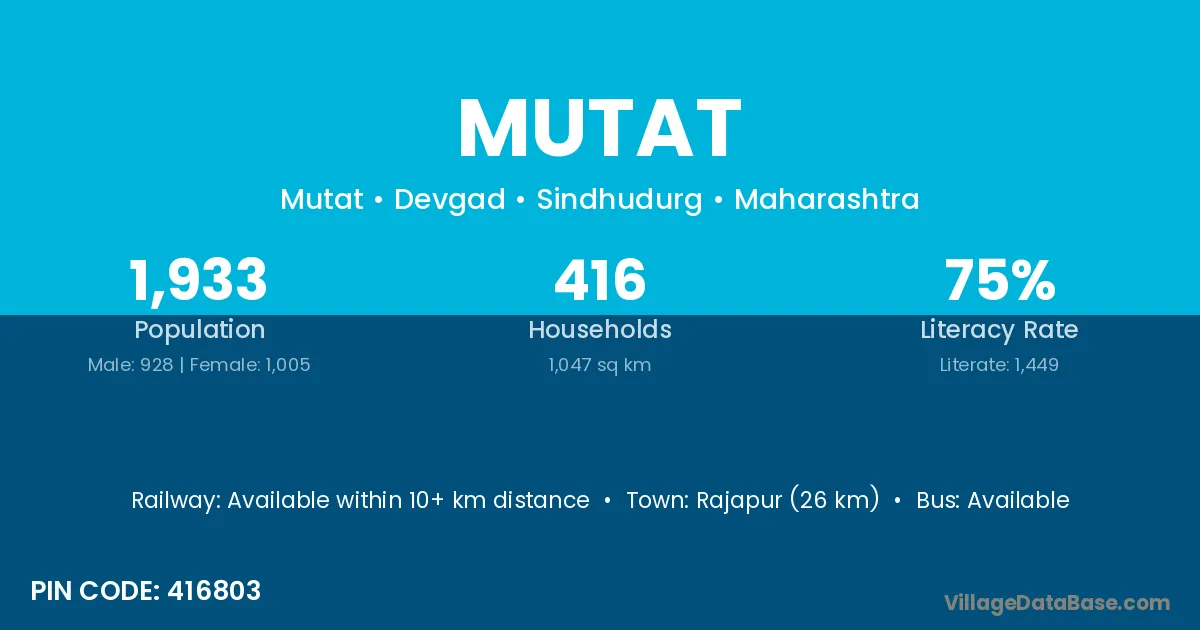 Rajapur (26 km) is the nearest town to Mutat village for major economic activities and is located approximately 26 km away.