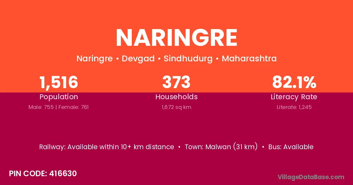 Malwan (31 km) is the nearest town to Naringre village for major economic activities and is located approximately 31 km away.
