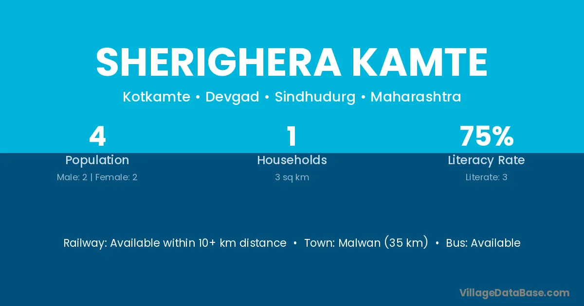 Malwan (35 km) is the nearest town to Sherighera Kamte village for major economic activities and is located approximately 35 km away.