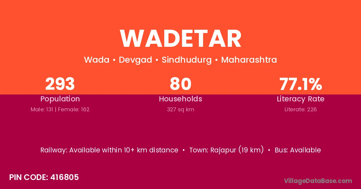Rajapur (19 km) is the nearest town to Wadetar village for major economic activities and is located approximately 19 km away.