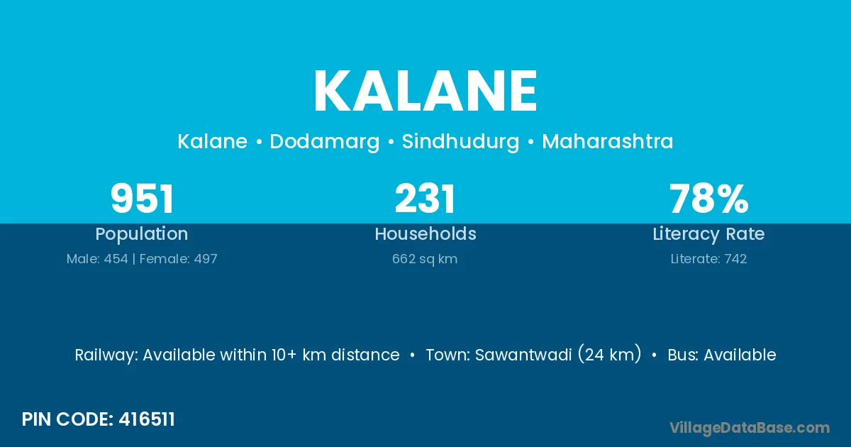 Sawantwadi (24 km) is the nearest town to Kalane village for major economic activities and is located approximately 24 km away.