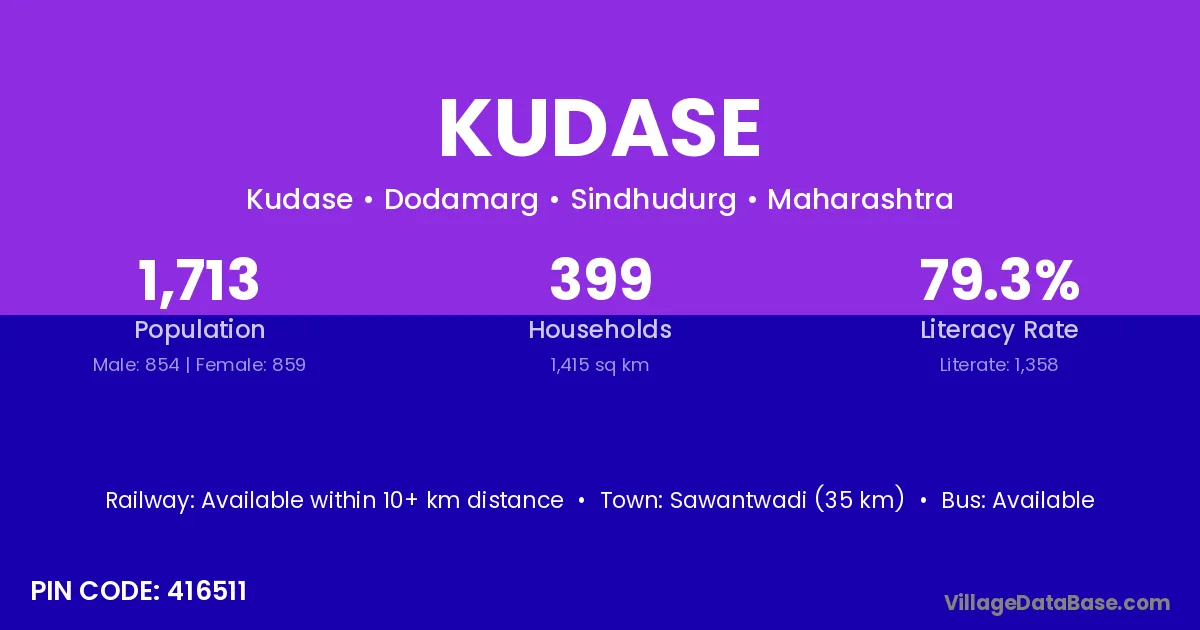 Sawantwadi (35 km) is the nearest town to Kudase village for major economic activities and is located approximately 35 km away.