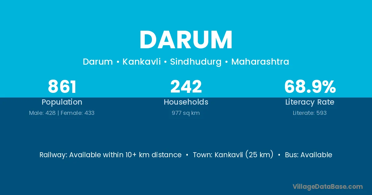 Kankavli (25 km) is the nearest town to Darum village for major economic activities and is located approximately 25 km away.