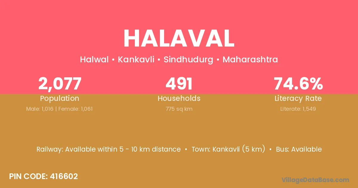 Kankavli (5 km) is the nearest town to Halaval village for major economic activities and is located approximately 5 km away.