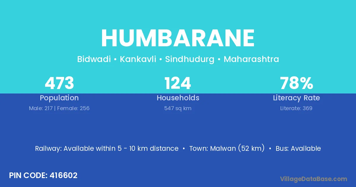 Malwan (52 km) is the nearest town to Humbarane village for major economic activities and is located approximately 52 km away.