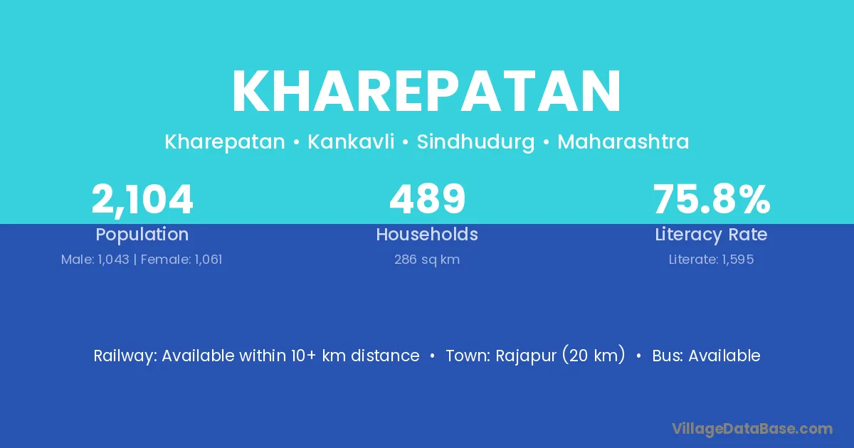 Rajapur (20 km) is the nearest town to Kharepatan village for major economic activities and is located approximately 20 km away.