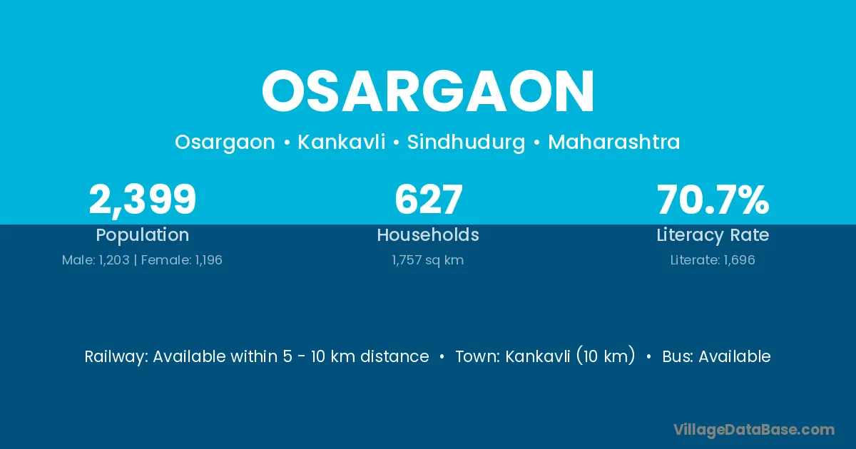 Kankavli (10 km) is the nearest town to Osargaon village for major economic activities and is located approximately 10 km away.