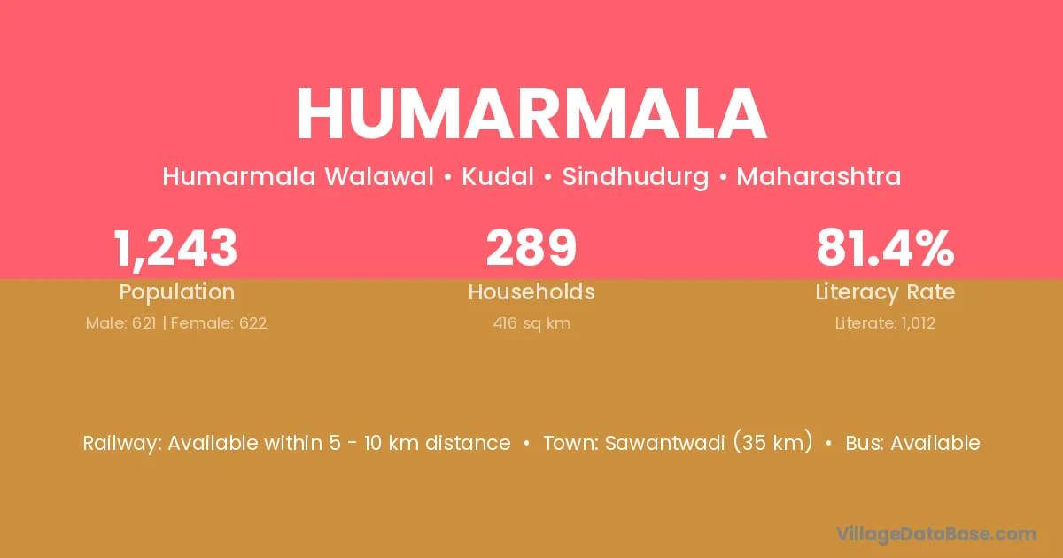 Sawantwadi (35 km) is the nearest town to Humarmala village for major economic activities and is located approximately 35 km away.