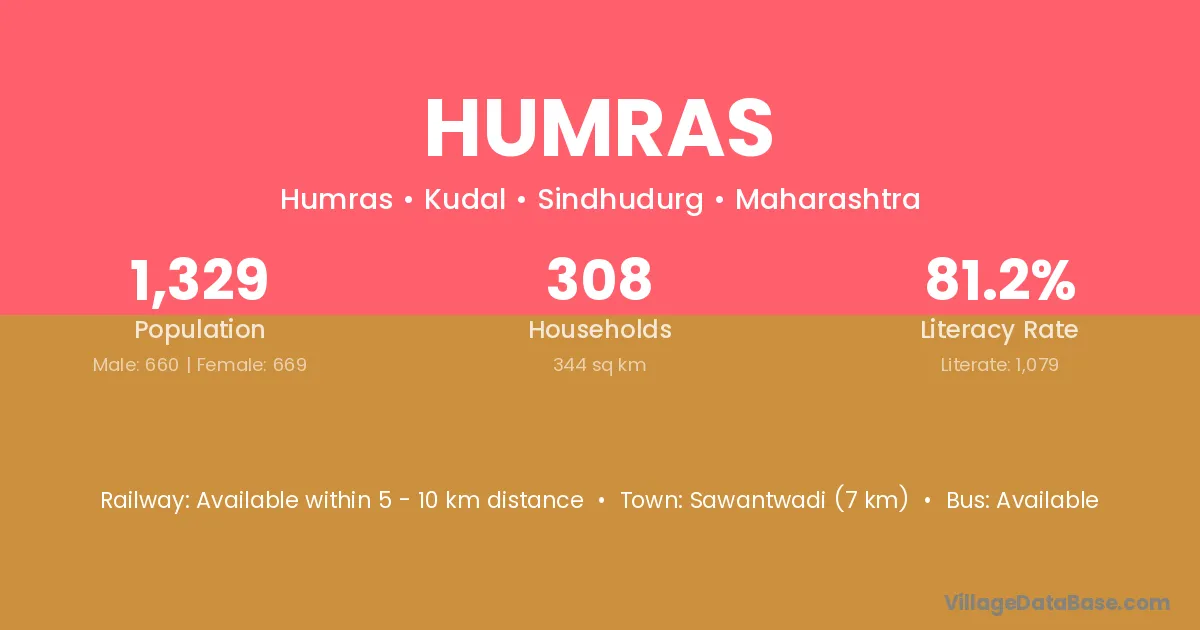 Sawantwadi (7 km) is the nearest town to Humras village for major economic activities and is located approximately 7 km away.