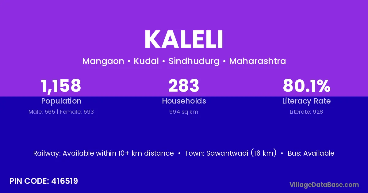 Sawantwadi (16 km) is the nearest town to Kaleli village for major economic activities and is located approximately 16 km away.