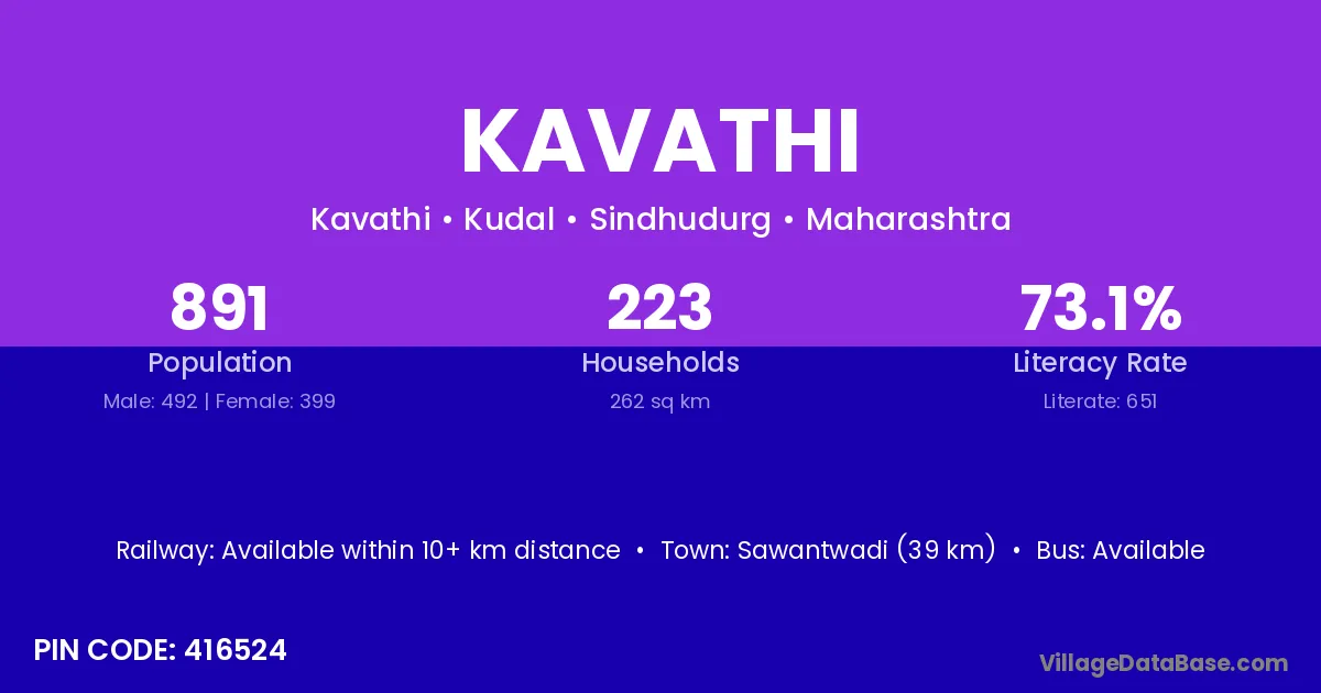 Sawantwadi (39 km) is the nearest town to Kavathi village for major economic activities and is located approximately 39 km away.