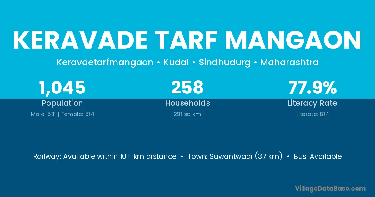 Keravade Tarf Mangaon village has a total population of 1,045 people, of which 531 are males and 514 are females.