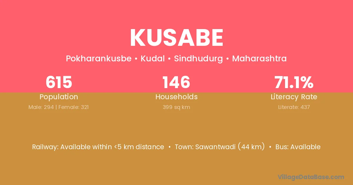 Sawantwadi (44 km) is the nearest town to Kusabe village for major economic activities and is located approximately 44 km away.