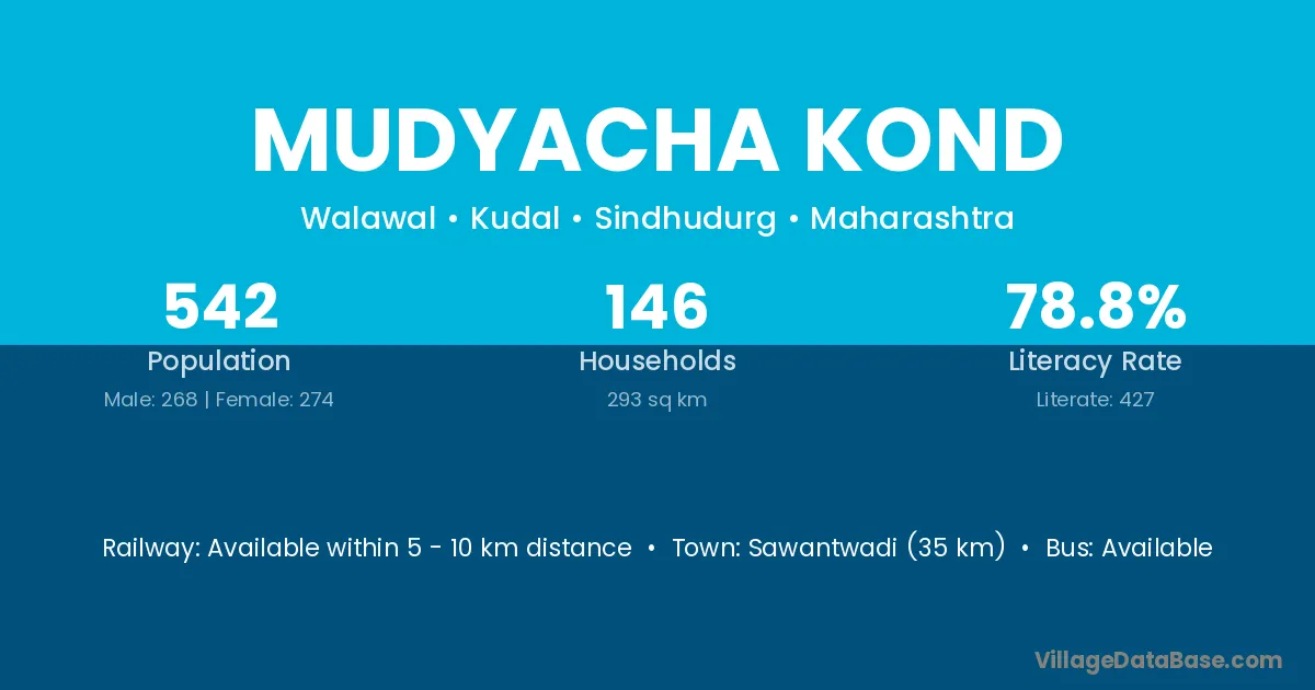 Sawantwadi (35 km) is the nearest town to Mudyacha Kond village for major economic activities and is located approximately 35 km away.