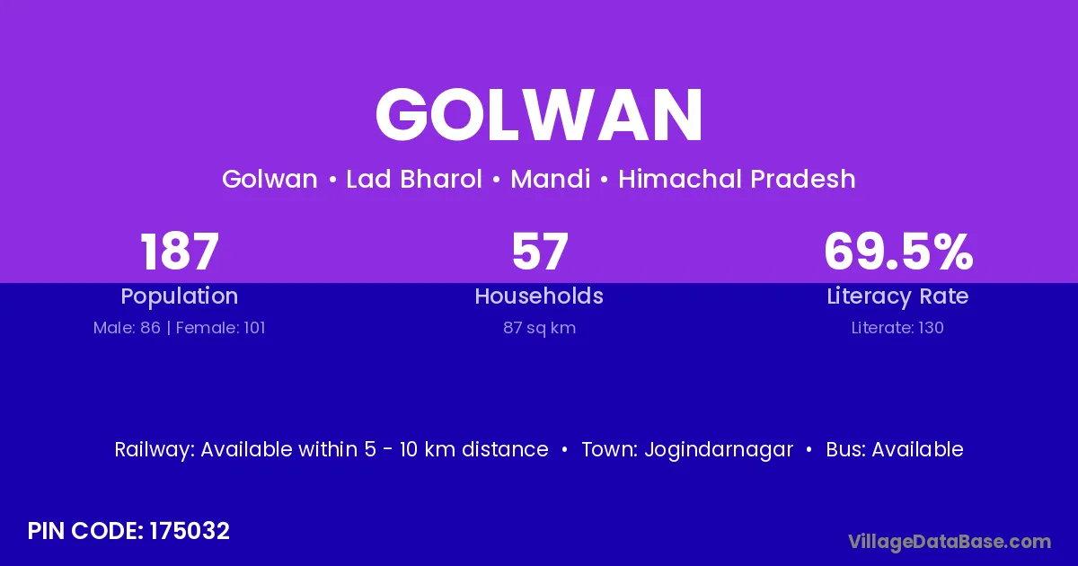 Malwan (29 km) is the nearest town to Golwan village for major economic activities and is located approximately 29 km away.