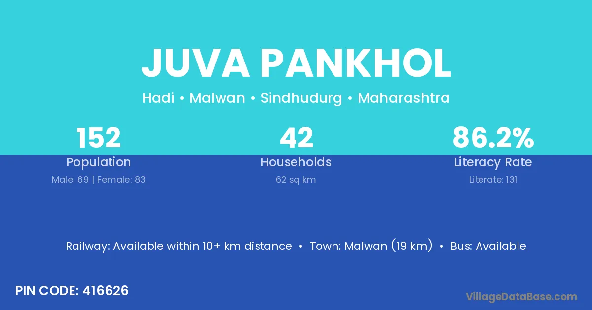 Malwan (19 km) is the nearest town to Juva Pankhol village for major economic activities and is located approximately 19 km away.