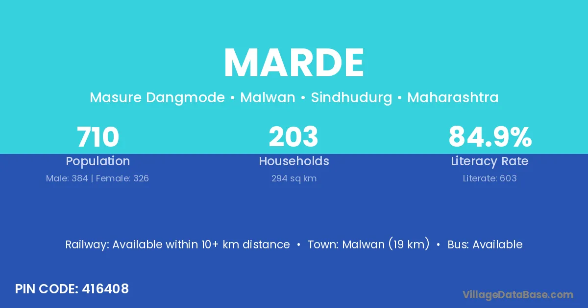 Malwan (19 km) is the nearest town to Marde village for major economic activities and is located approximately 19 km away.
