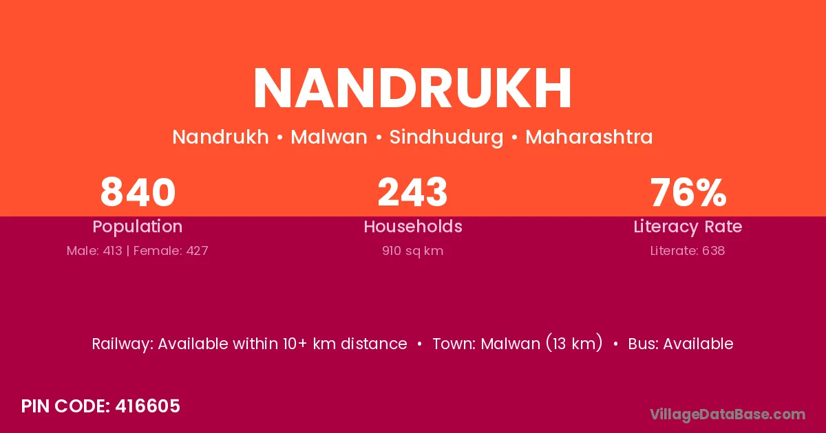 Malwan (13 km) is the nearest town to Nandrukh village for major economic activities and is located approximately 13 km away.
