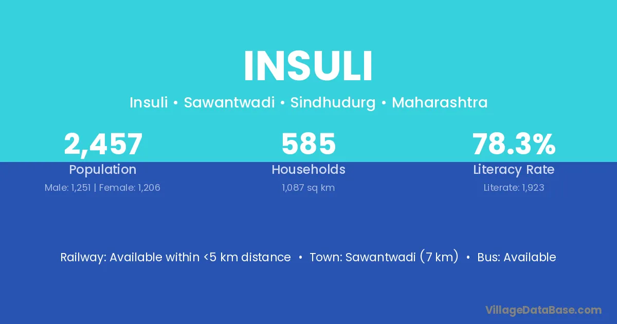 Sawantwadi (7 km) is the nearest town to Insuli village for major economic activities and is located approximately 7 km away.