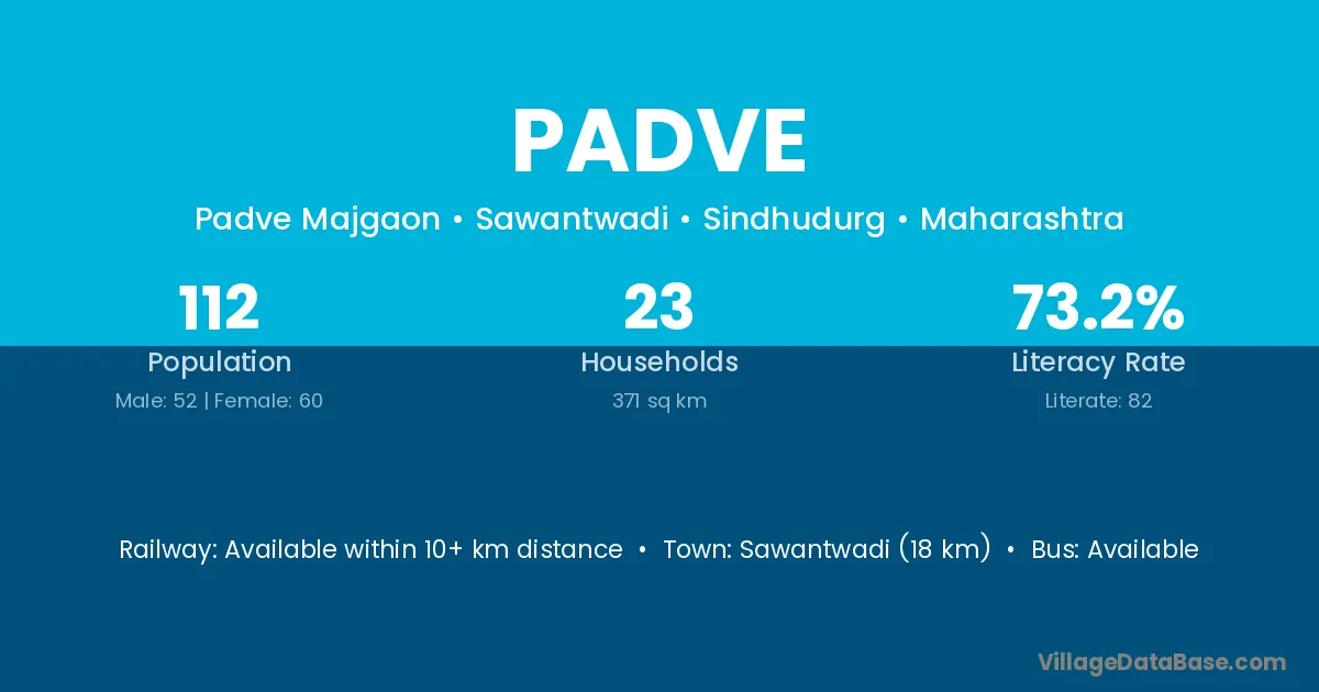 Sawantwadi (18 km) is the nearest town to Padve village for major economic activities and is located approximately 18 km away.