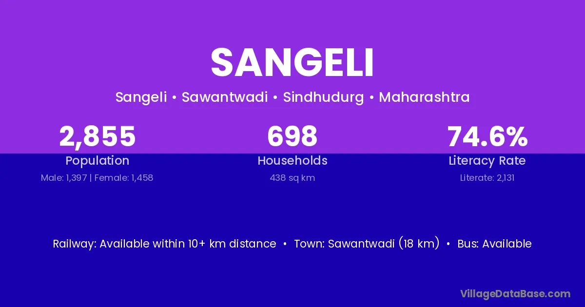Sawantwadi (18 km) is the nearest town to Sangeli village for major economic activities and is located approximately 18 km away.