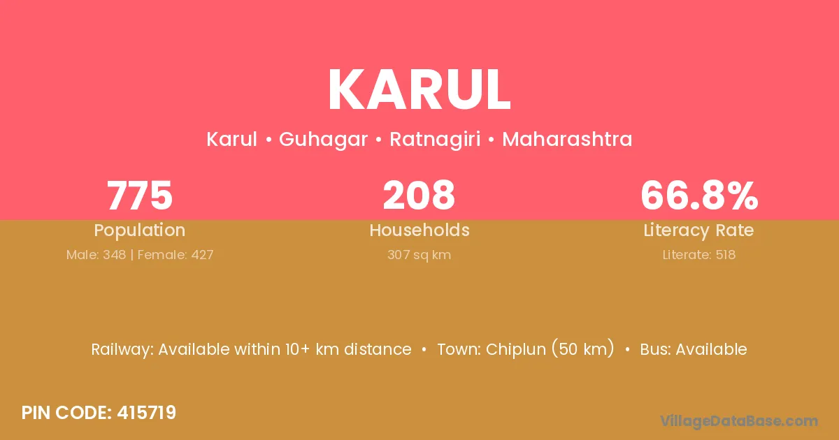 Kankavli (48 km) is the nearest town to Karul village for major economic activities and is located approximately 48 km away.
