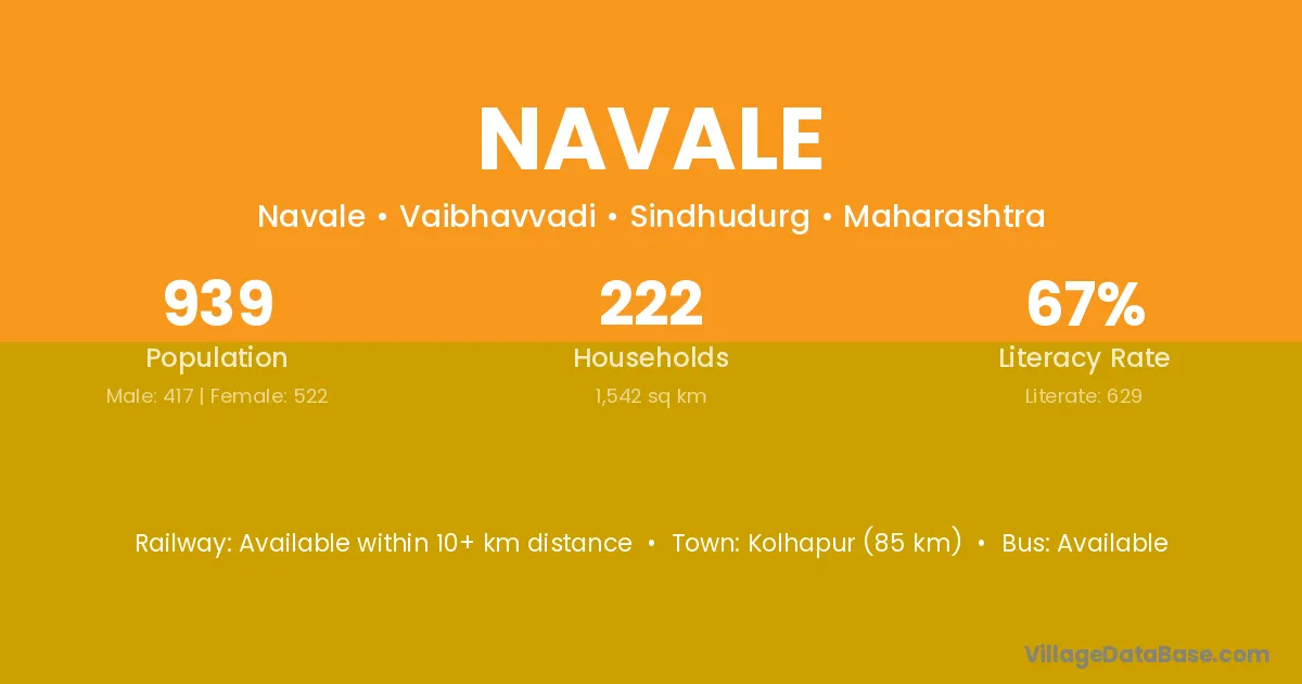 Kolhapur (85 km) is the nearest town to Navale village for major economic activities and is located approximately 85 km away.