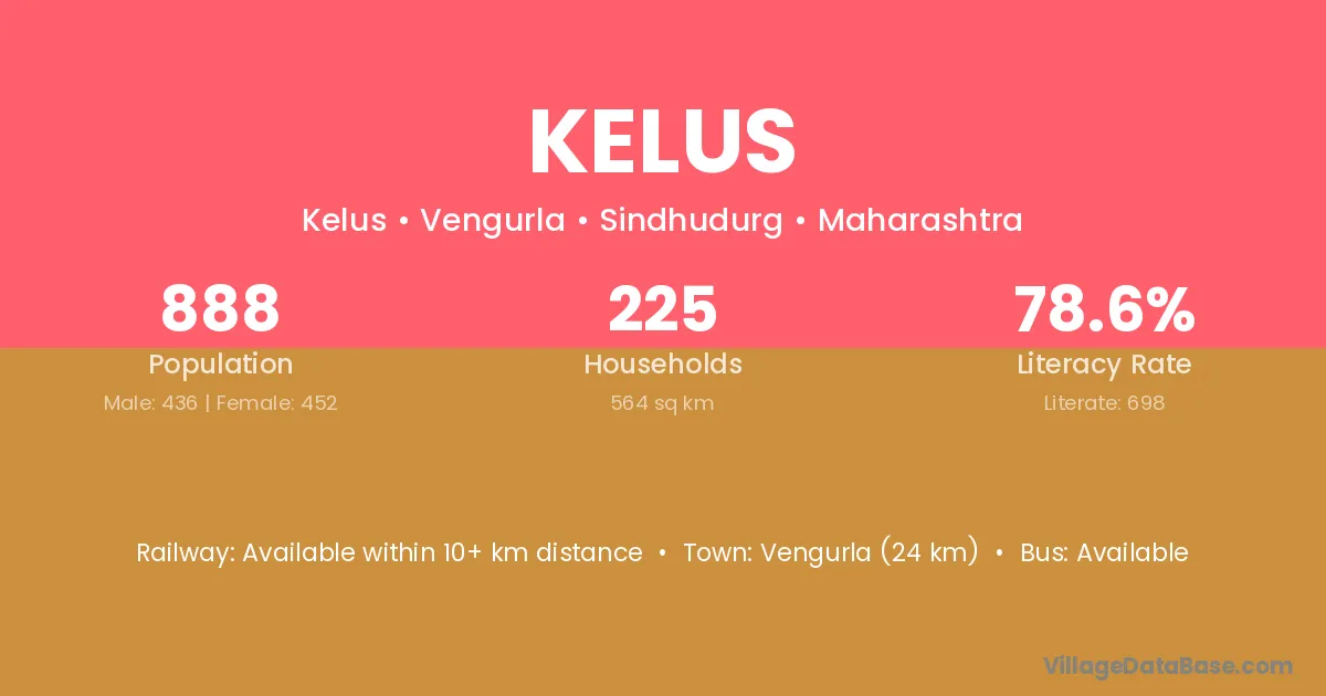 Vengurla (24 km) is the nearest town to Kelus village for major economic activities and is located approximately 24 km away.
