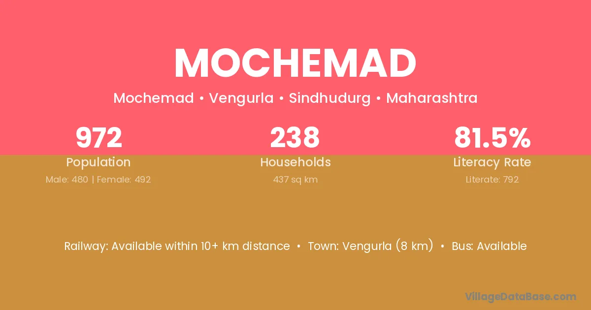 Vengurla (8 km) is the nearest town to Mochemad village for major economic activities and is located approximately 8 km away.