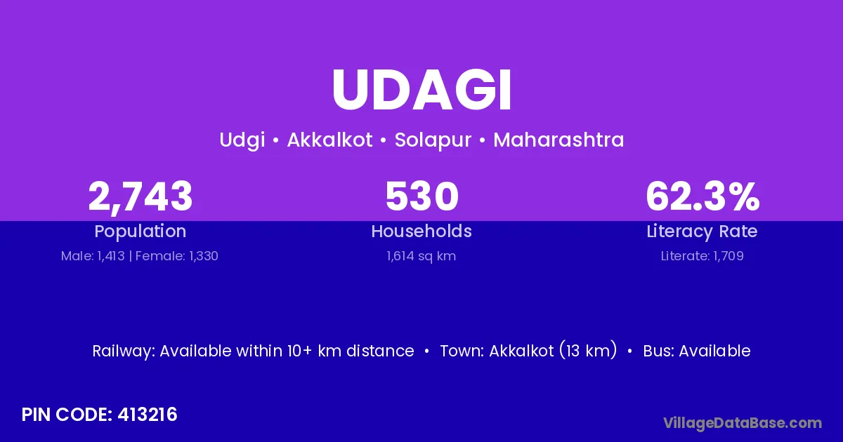 Akkalkot (13 km) is the nearest town to Udagi village for major economic activities and is located approximately 13 km away.