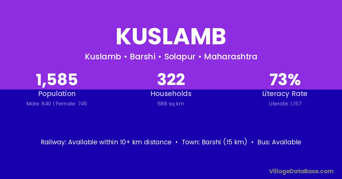 Barshi (15 km) is the nearest town to Kuslamb village for major economic activities and is located approximately 15 km away.