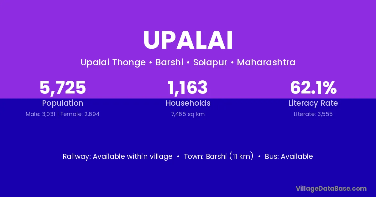 Barshi (11 km) is the nearest town to Upalai village for major economic activities and is located approximately 11 km away.