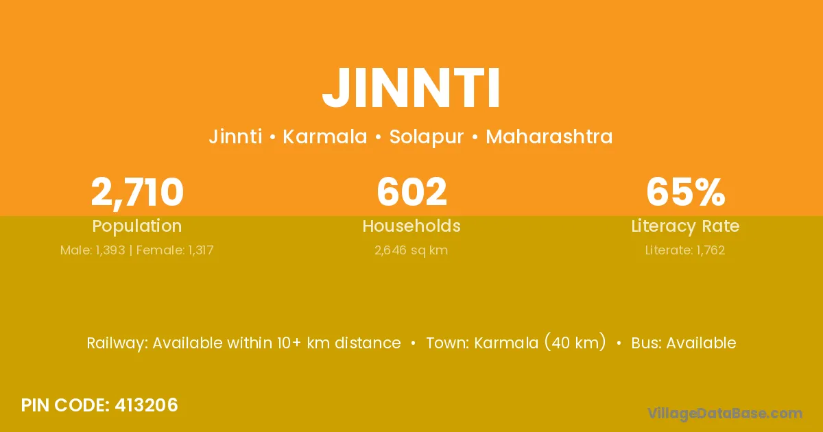 Karmala (40 km) is the nearest town to Jinnti village for major economic activities and is located approximately 40 km away.