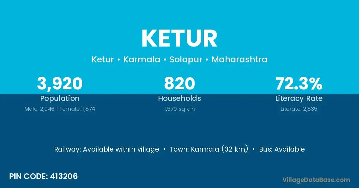 Karmala (32 km) is the nearest town to Ketur village for major economic activities and is located approximately 32 km away.