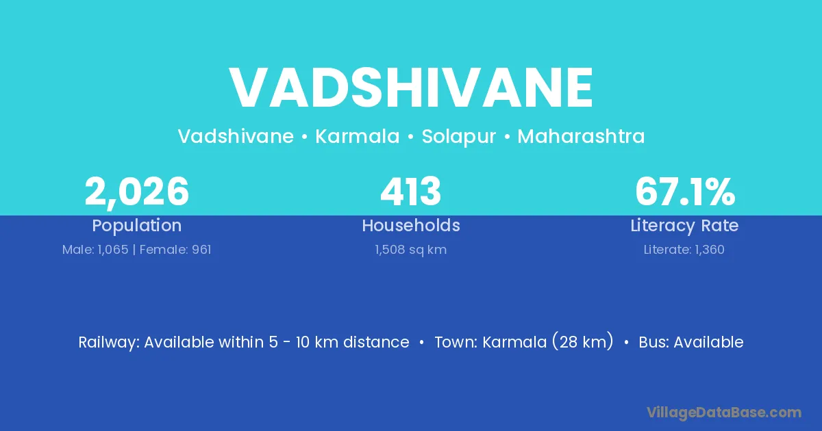 Karmala (28 km) is the nearest town to Vadshivane village for major economic activities and is located approximately 28 km away.