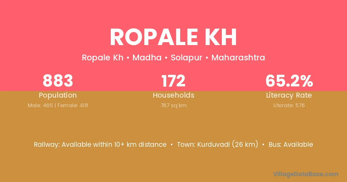 Kurduvadi (26 km) is the nearest town to Ropale Kh village for major economic activities and is located approximately 26 km away.