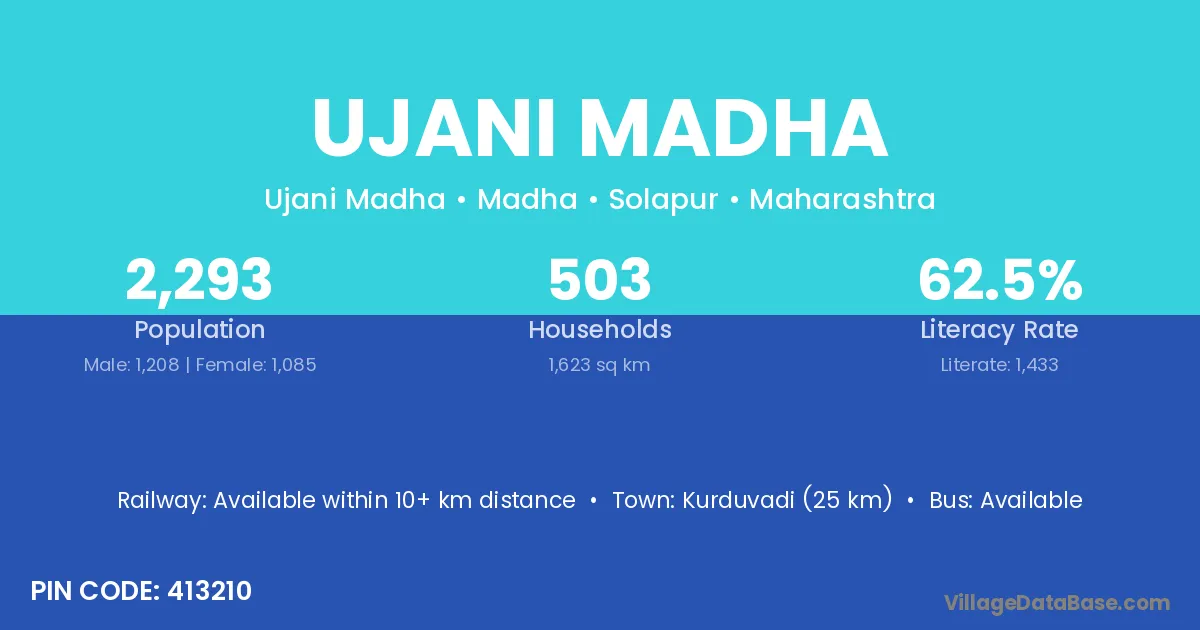 Kurduvadi (25 km) is the nearest town to Ujani Madha village for major economic activities and is located approximately 25 km away.