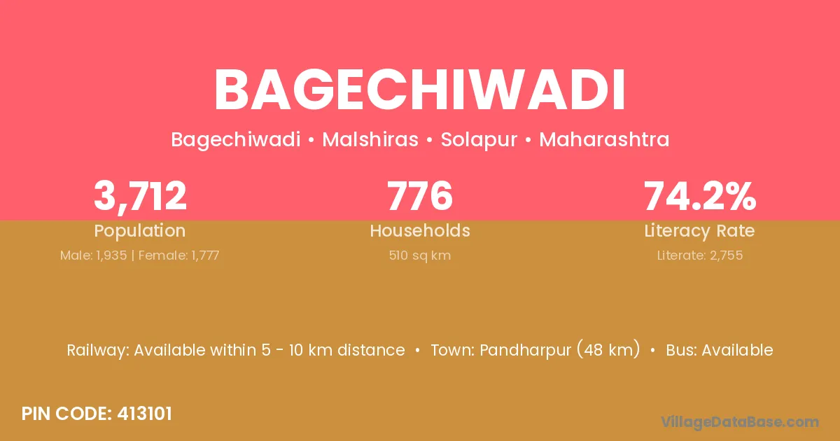 Pandharpur (48 km) is the nearest town to Bagechiwadi village for major economic activities and is located approximately 48 km away.