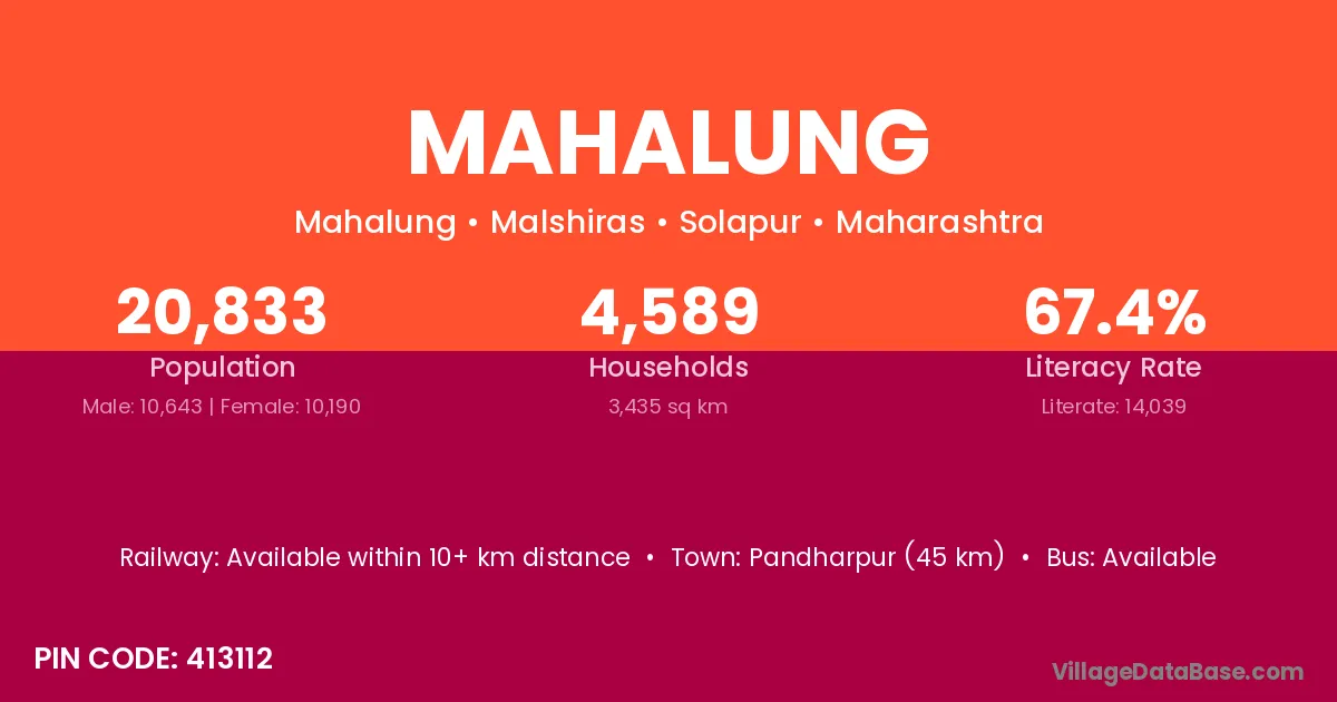 Pandharpur (45 km) is the nearest town to Mahalung village for major economic activities and is located approximately 45 km away.