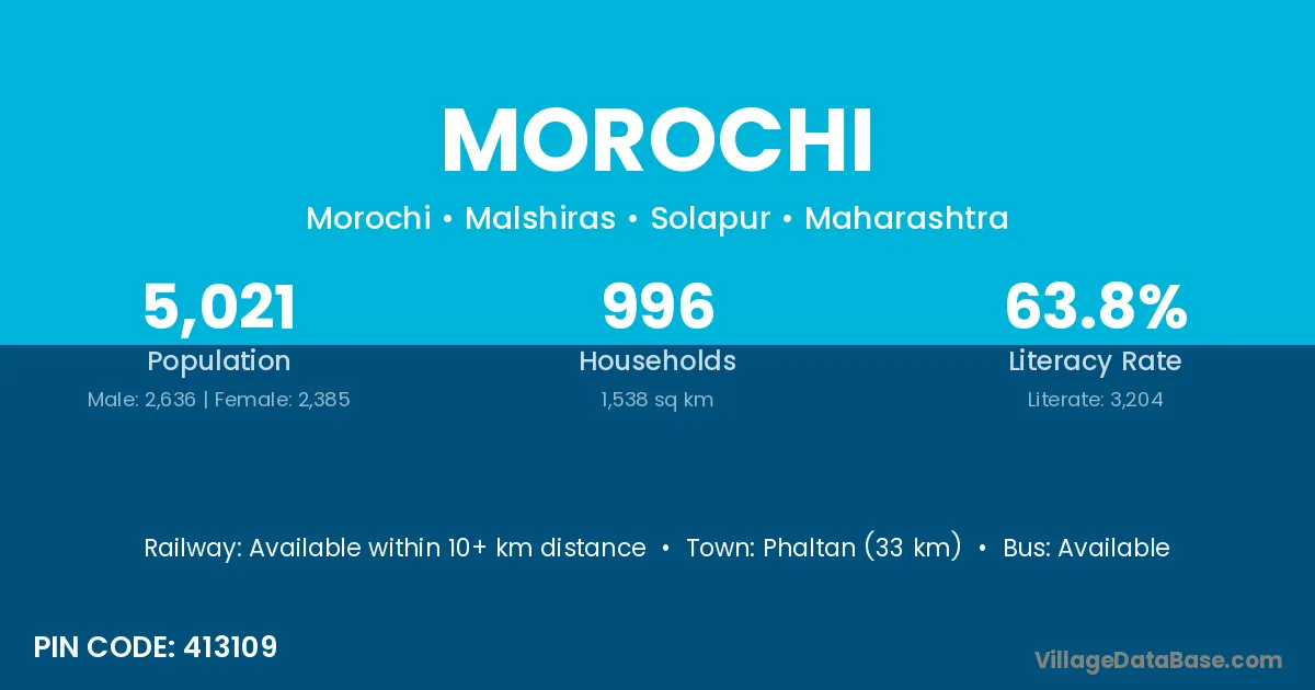 Phaltan (33 km) is the nearest town to Morochi village for major economic activities and is located approximately 33 km away.
