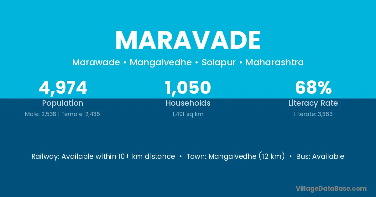 Mangalvedhe (12 km) is the nearest town to Maravade village for major economic activities and is located approximately 12 km away.