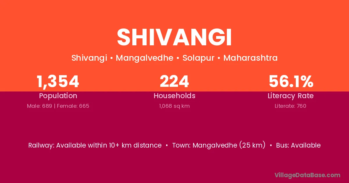 Mangalvedhe (25 km) is the nearest town to Shivangi village for major economic activities and is located approximately 25 km away.
