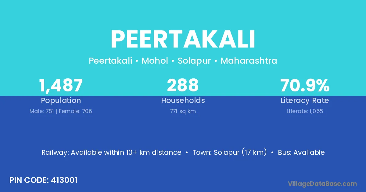 Solapur (17 km) is the nearest town to Peertakali village for major economic activities and is located approximately 17 km away.