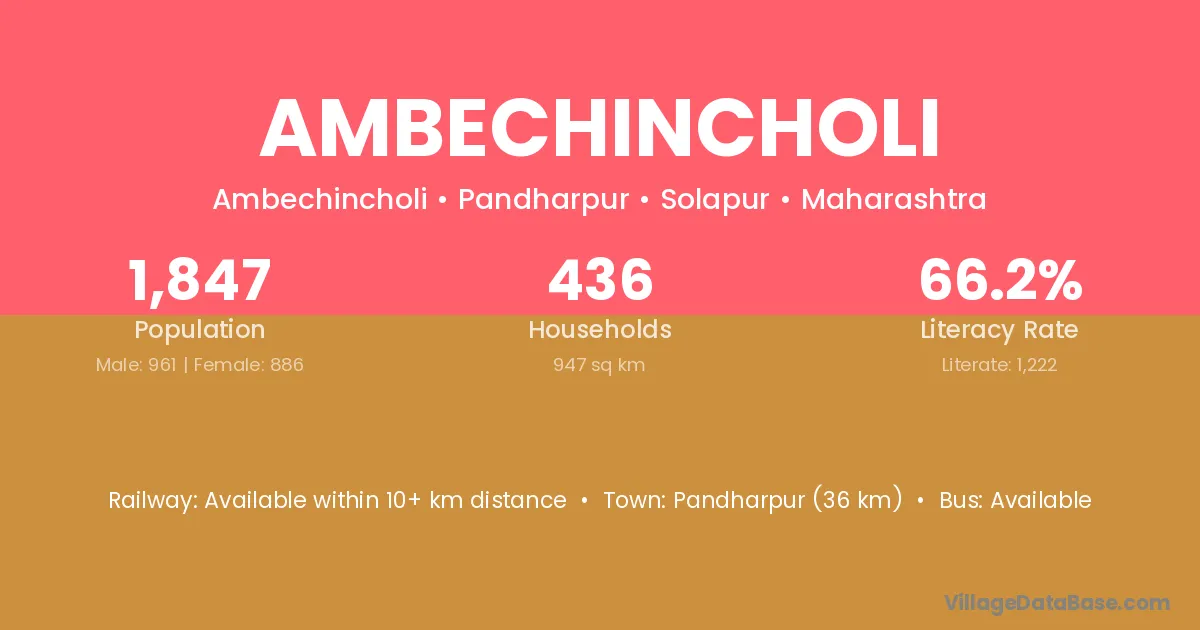 Pandharpur (36 km) is the nearest town to Ambechincholi village for major economic activities and is located approximately 36 km away.