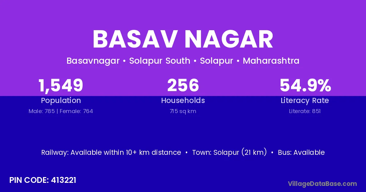 Solapur (21 km) is the nearest town to Basav Nagar village for major economic activities and is located approximately 21 km away.