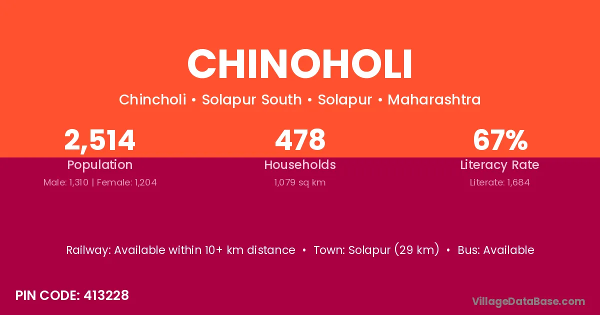 Solapur (29 km) is the nearest town to Chinoholi village for major economic activities and is located approximately 29 km away.