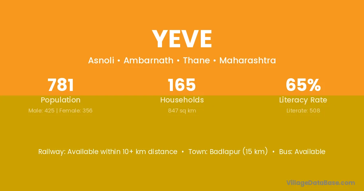 Badlapur (15 km) is the nearest town to Yeve village for major economic activities and is located approximately 15 km away.