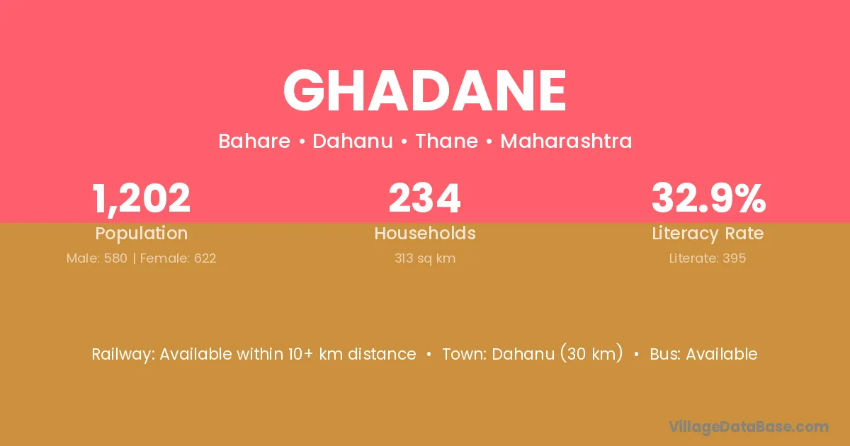 Bhiwandi (27 km) is the nearest town to Ghadane village for major economic activities and is located approximately 27 km away.