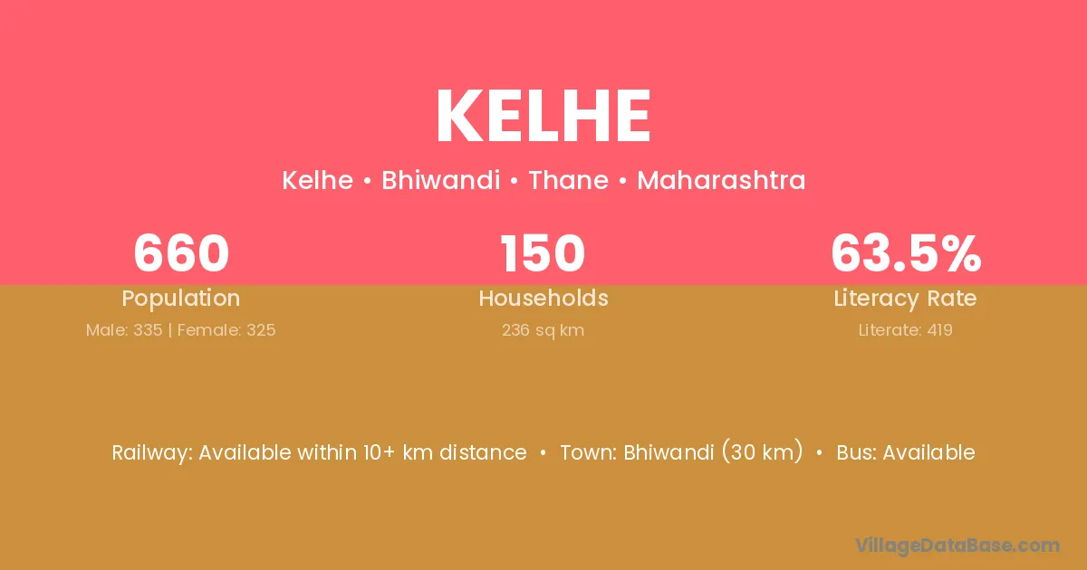Bhiwandi (30 km) is the nearest town to Kelhe village for major economic activities and is located approximately 30 km away.